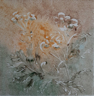 Et il fabrique également des outils pour dessiner: par exemple le 'folded pen' ci-dessus, qui retient l'encre très longtemps, et permet de varier l'épaisseur des traits, même de faire des surfaces. À la cueillette de fruits du "Rosa Spinosissima" (églantier pimprenelle) qui donne une belle encre pourpre (qui devient noire avec le sulfate de fer)